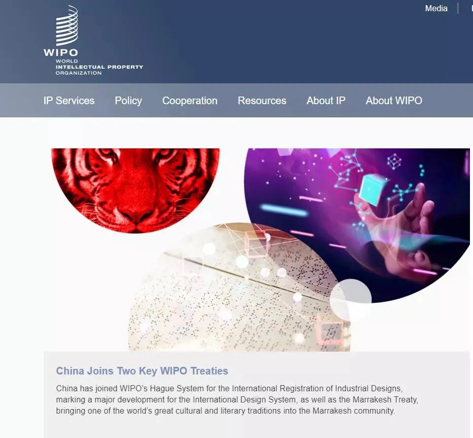 世界知识产权组织(WIPO)2月5日发布新闻称,中国加入该组织的工业设计保护条约,标志着国际设计体系的一项重大进展;中国还同时加入了《马拉喀什条约》,使世界伟大的文化和文学传统之一融入马拉喀什共同体。
