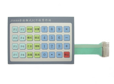 薄膜开关按键是由柔性绝缘材料层和导电材料层组合而成的一种密封多层结构非自锁按键开关,是近年来国际上流行的一种集面板与开关功能标记、显示窗、指示灯透明窗、开关内边线、开关电路引出线为一体的新型微电流电子开关构成电子操纵系统总成其同常规机械开关比较,具有外形美观、寿命长、耐弯折,密封性强、防水、防油污、防震、耐摔、体积小超薄、重量轻等常规开关无法比拟的优点。被广泛应用于工业、机械、电子、医疗、仪器、仪表、日用电器等诸多领域。