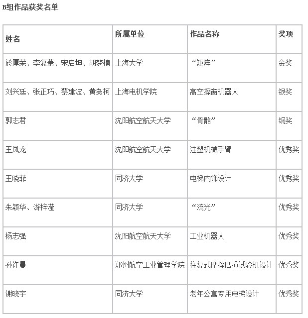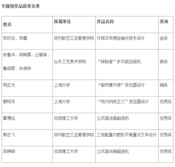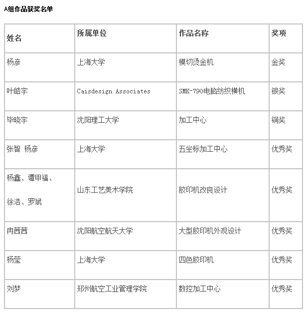 “上海电气杯”第十一届工业设计大奖赛获奖名单